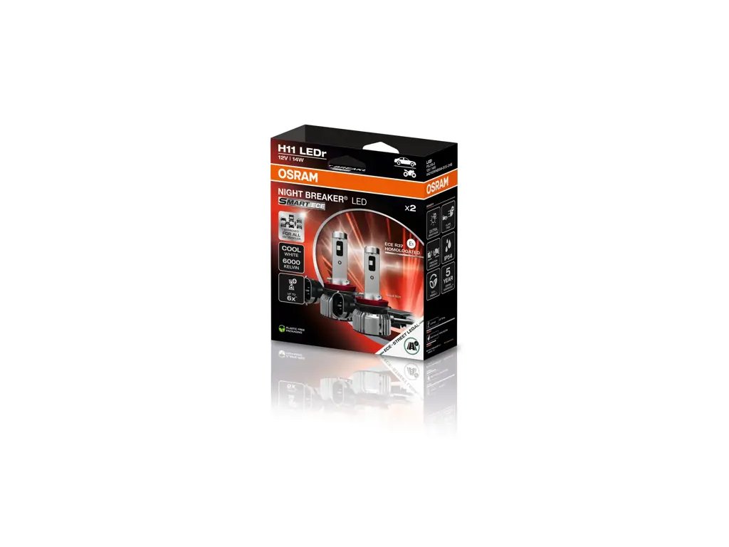 OSRAM NIGHT BREAKER LED SMART ECE H11 nabízejí moderní a jasné bílé světlo (až 6000 kelvinů) a přesvědčují svým mimořádným jasem, přičemž oslnění ostatních účastníků silničního provozu klesá pod přípustné maximální hodnoty až o 50 %.