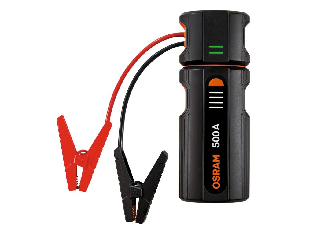 OSRAM BATTERYjumpstart 500 dokáže nastartovat vozidla s motory do 3 l benzínu nebo 1,5 l nafty. Je vhodný pro většinu 12V osobních automobilů, dodávek, SUV a lehkých užitkových vozidel. Funkce Boost umožňuje nastartování zcela vybitých baterií. Jedinečné ergonomické připojení s inteligentní svorkou je vybaveno delšími kabely pro lepší dostupnost v těžko přístupných místech. Mezi bezpečnostní funkce patří ochrana proti přepólování, ochrana proti výboji a ochrana proti zkratu se zvukovými a LED indikátory. Integrovaná svítilna osvětluje pracovní prostor a LED indikátory ukazují aktuální stav nabití baterie. Zařízení je vybaveno portem USB-C pro dobíjení a výstupem USB-A pro nabíjení zařízení, jako jsou tablety a telefony.